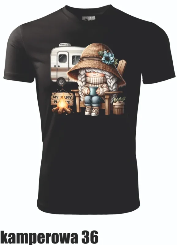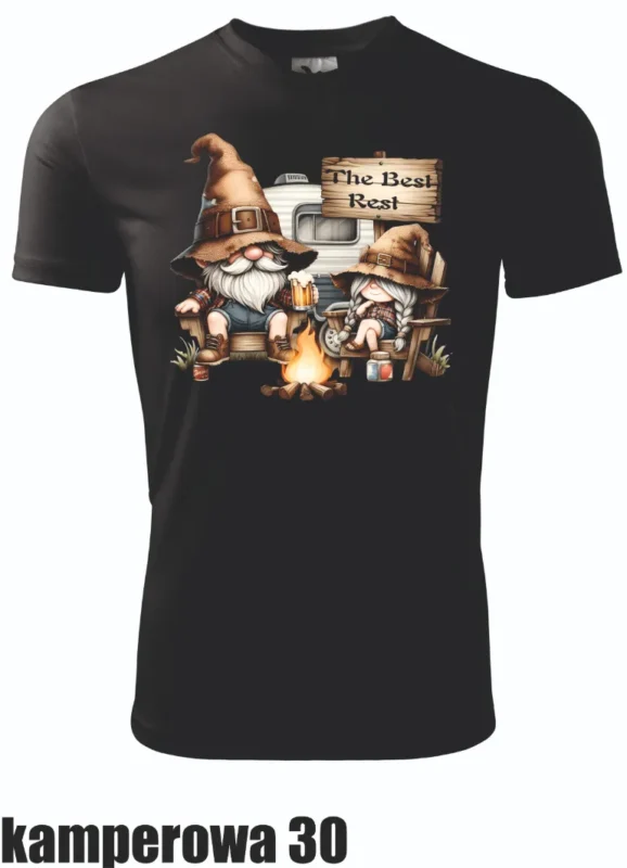 Świetna koszulka dla wszystkich członków ekipy campingowej. Stylowy nadruk okularów z krajobrazem lasu, idealny na wspólne wypady pod namiot.