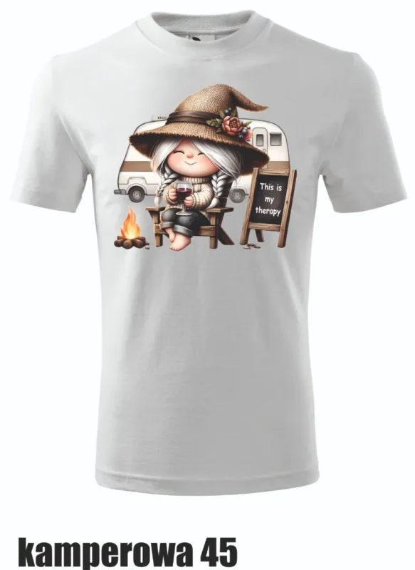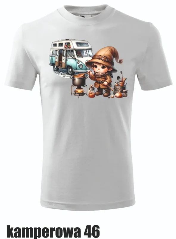Urocza koszulka z postacią małej podróżniczki z aparatem w ręku, gotowej na kolejną przygodę w kamperze. Idealna dla tych, którzy kochają uwieczniać wspomnienia z podróży.