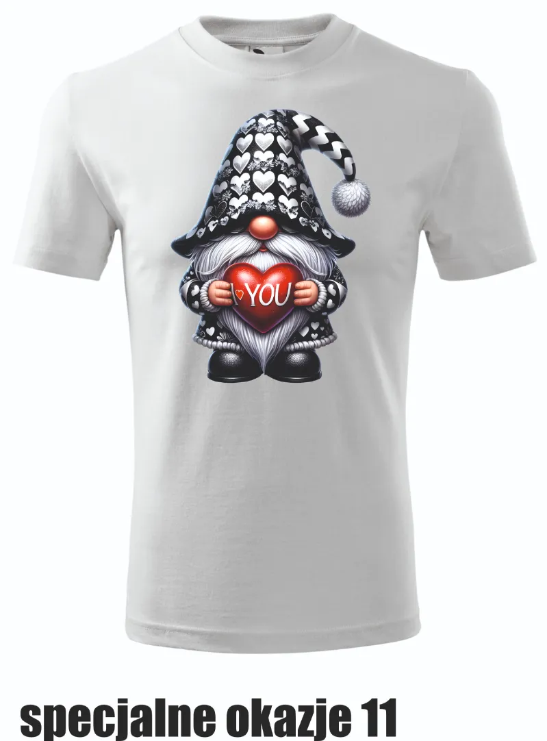 Koszulka prezentuje uroczego skrzata z sercem, na którym widnieje napis „I ❤️ YOU”. Idealna na romantyczne chwile, świetnie nadaje się na prezent walentynkowy lub wyraz sympatii.