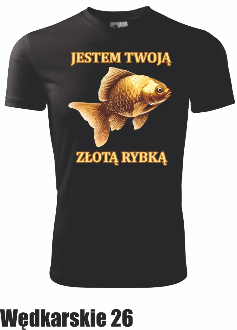 Jestem Twoją Złotą Rybką – ta koszulka to świetna propozycja dla wędkarzy, którzy szukają czegoś nietuzinkowego. Idealna na prezent lub do noszenia na co dzień z nutą zabawy i uśmiechu.