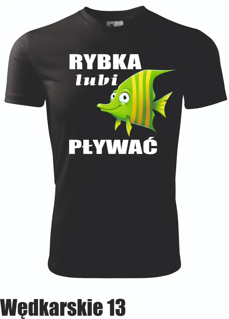 Zabawna koszulka z napisem „Rybka lubi pływać” to idealny wybór dla wędkarzy z poczuciem humoru. Kolorowy, kreskówkowy motyw rybki doda każdemu uśmiechu, zarówno nad wodą, jak i w codziennych sytuacjach.